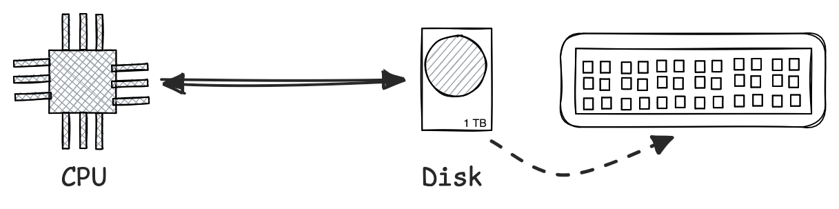 For reference, if you have a 4 GHz CPU and the fastest NVMe SSDs, it takes about 0.01 milliseconds of latency to read something from the disk. This is about 40,000 CPU cycles wait, just to read something from the disk that is on your computer. Moreover, if you live in New York city and the servers are located in Chicago, it takes around 20 milliseconds just to do a roundtrip without any additional operations, which takes about 80,000,000 spare cycles.